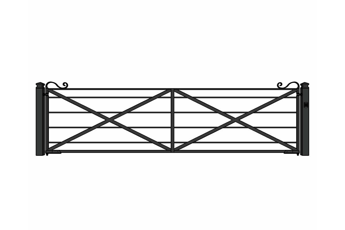 Our estate driveway gates feature a classic, minimal design, perfect for rural properties. Each gate is custom-built and made to measure, with options for secure manual or fully automated operation.